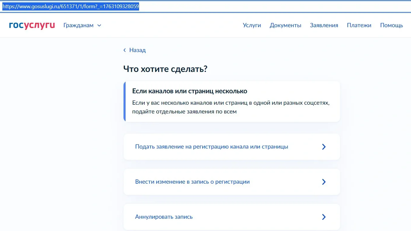 - Подготовьте необходимую информацию для заполнения: название соцсети/канала/страницы, телефон, электронную почту, к которым привязан канал или страница, телефон администратора канала или страницы.