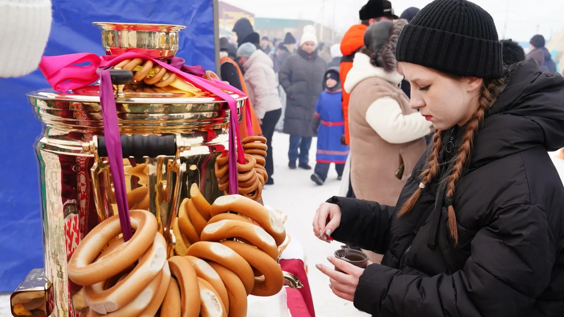 «В «Октябрьском» состоялся первый этно-праздник «Нани'Торова». Гости увидели конкурс снежных скульптур, спуск на сноубордах в костюмах, а также гастрономическое шоу. В меню — ненецкий суп, строганина из оленины и рыбы, десерты из северных ягод и жареная рыба», — рассказал корреспондент медиахолдинга.