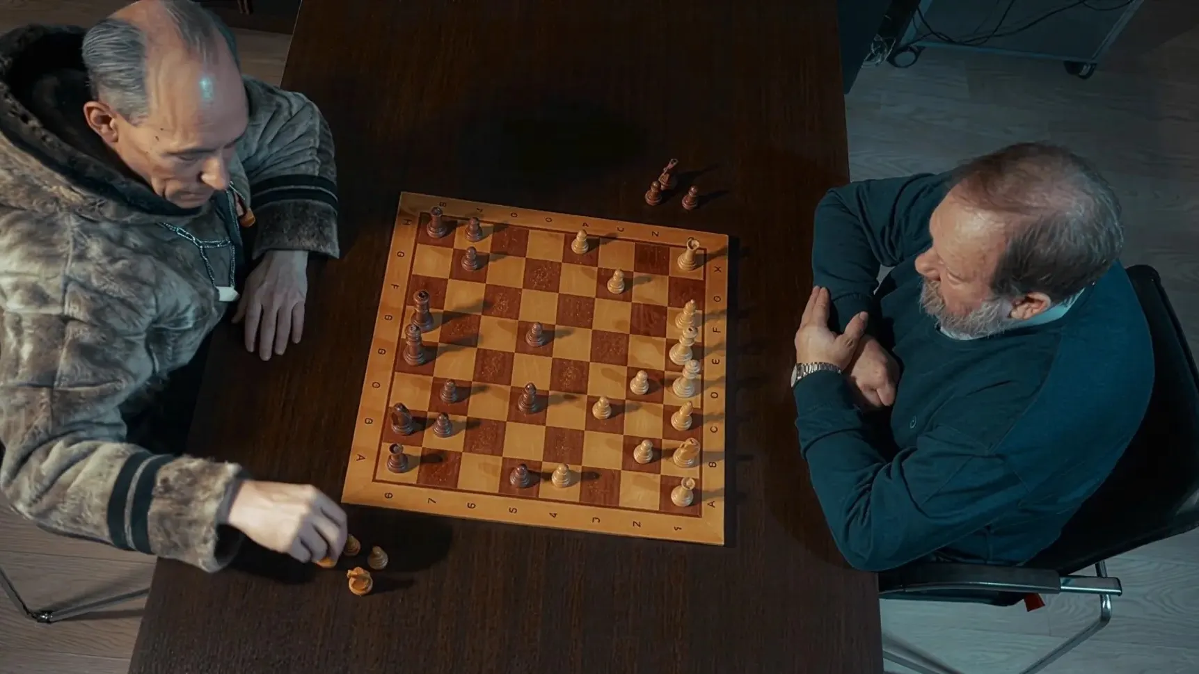 Авторы фильма использовали искусственный интеллект, чтобы создать невозможную в реальности встречу двух ученых — этнографа и археолога Валерия Чернецова и его ученика, исследователя Мангазеи Георгия Визгалова. За шахматной партией они обсуждают факты о древнем городе, в том числе ранее неизвестные широкому кругу зрителей. Премьеру покажут 27 апреля на телеканале «Ямал» в 20:00.