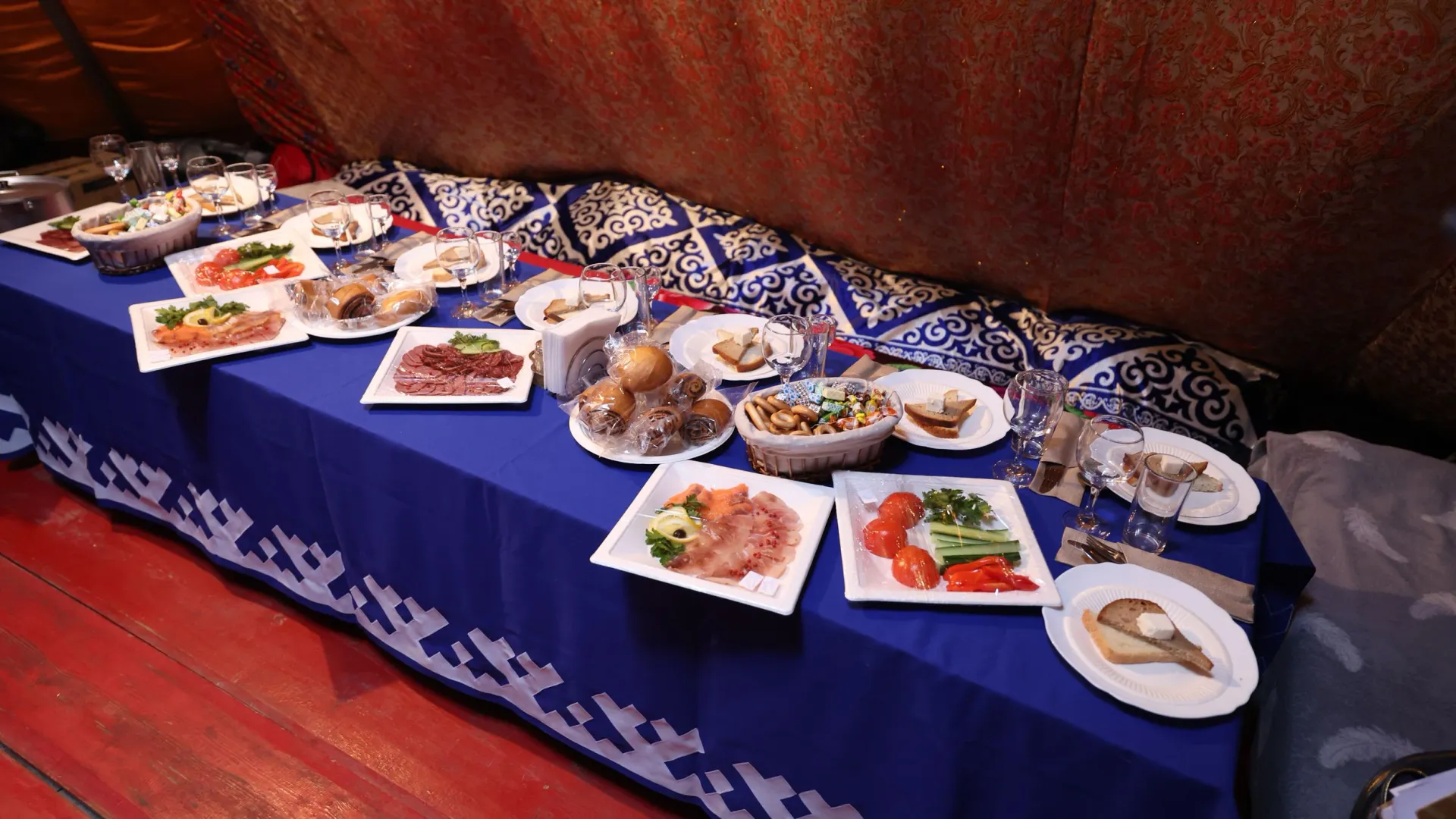 К тендеру прилагается предварительное меню. На завтрак, обед и ужин гостям предложат закуски из овощей, мяса и рыбы, горячие напитки, воду, десерты и хлеб. На завтрак подадут молочные каши. На обед обещают не менее трех видов супа и основных блюд, в том числе диетические и вегетарианские варианты. На ужин — три вида гарнира (например, рис, картофель, гречка). Меню может меняться по согласованию с гостями.