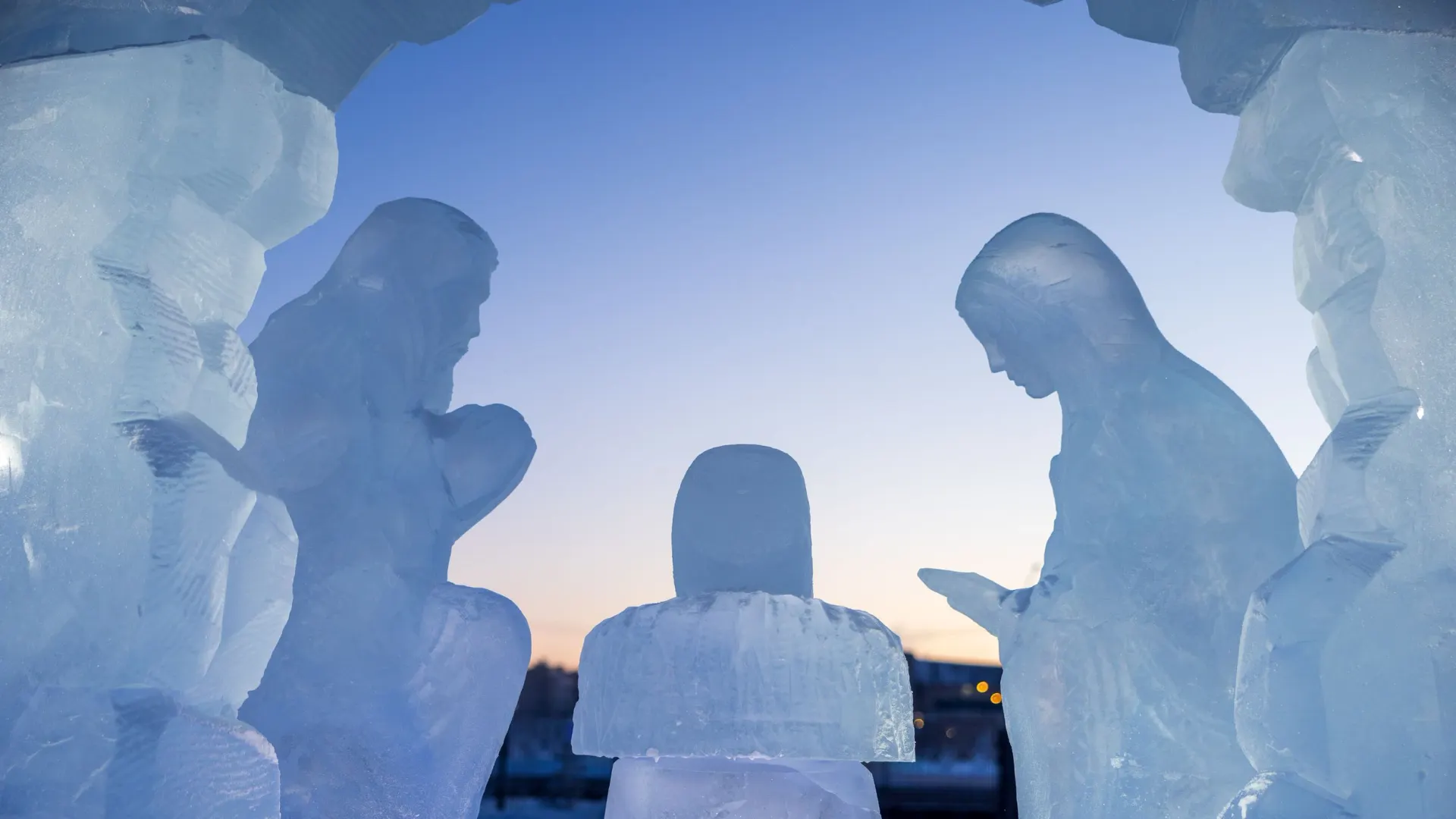 «Композиция победившего вертепа представляет библейскую картину рождения Иисуса Христа. Уникальная особенность — соединение в композиции ледяного обрамления и наполнения из фигур, — сообщили в пресс-службе.