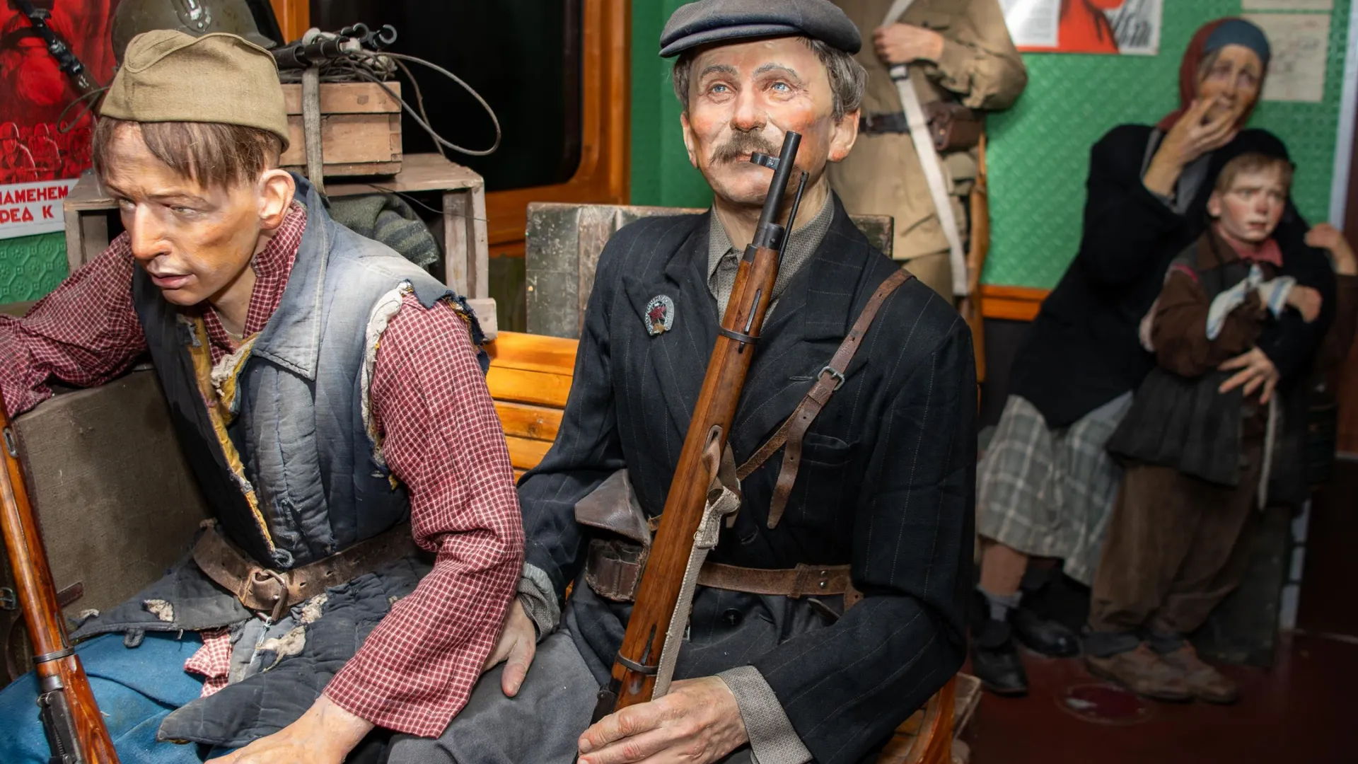 Уникальные вагоны ретропоезда работали в военное и послевоенное время. Среди них аптека-перевязочная, санпропускник, вагон для тяжелораненых, хлебопекарня и кухня. На открытых платформах выставлена историческая военная техника.
