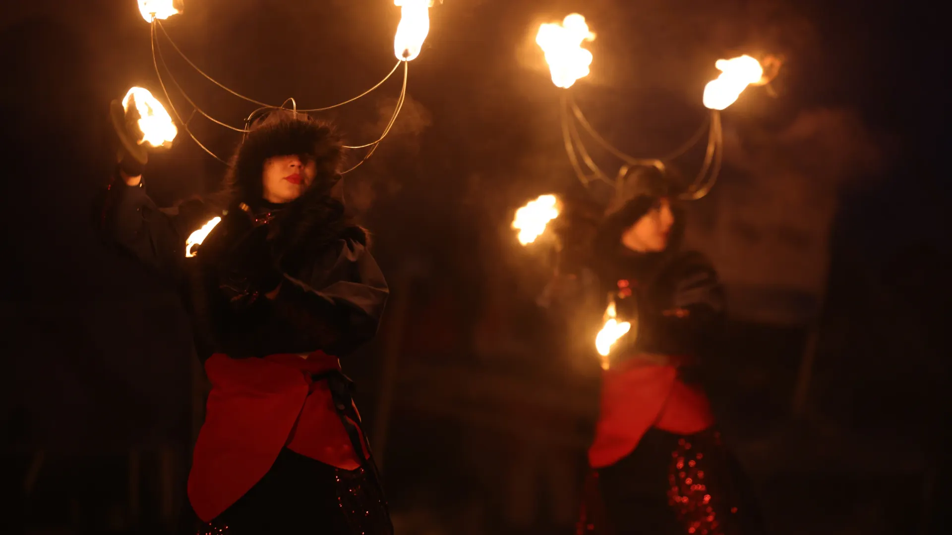 Завершением субботнего празднования Дня оленевода в Салехарде 21 марта стало яркое огненное шоу от тюменских артистов. Искрящееся представление запечатлел корреспондент «Ямал-Медиа».