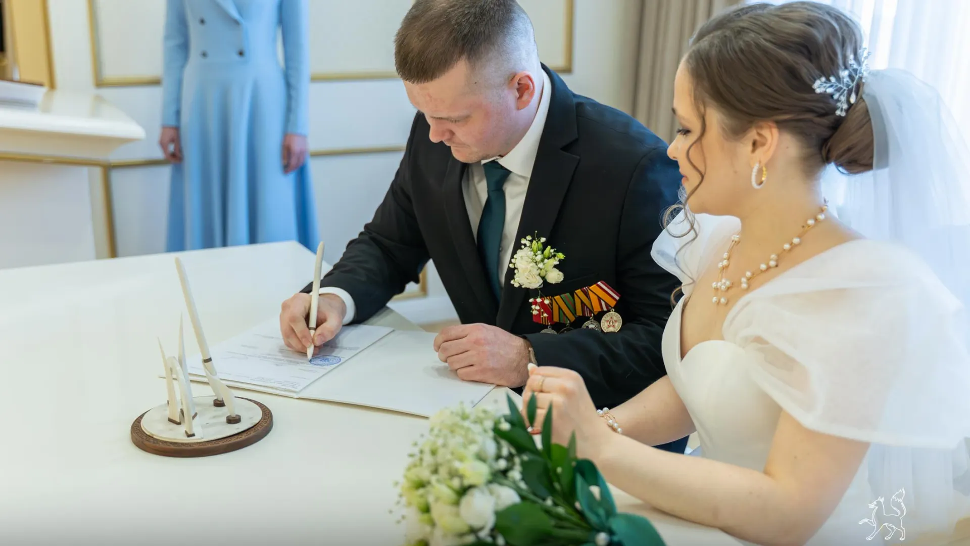 Молодожены в детстве жили в соседних дворах. Спустя годы они встретились и полюбили друг друга. Свадьбу сыграли в Масленую неделю.