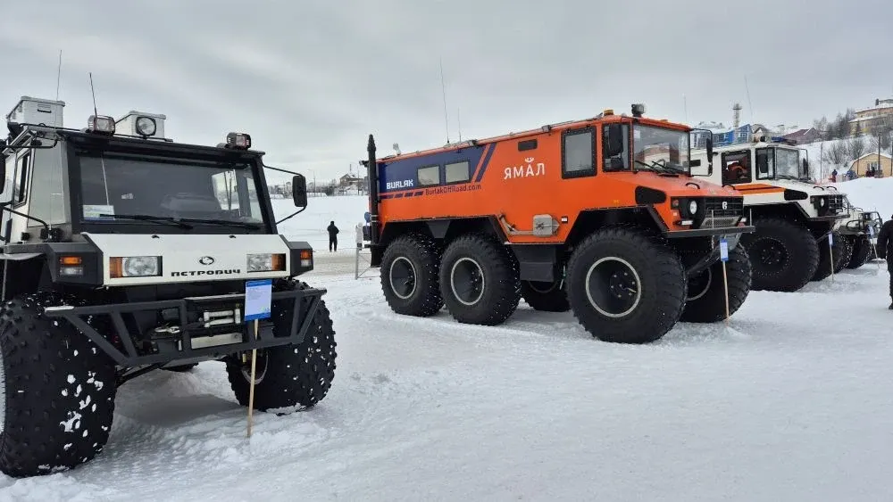 «Ямалспас» представил небольшую выставку спецтехники, на которой спасатели помогают ямальцам в трудных ситуациях. Здесь вездеходы «Трэкол», «Бурлак» — машины на огромных колесах с низким давлением», — пояснил журналист.