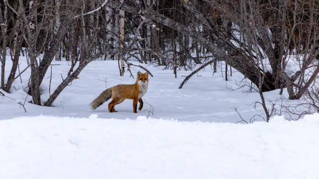 По южной части Нового Уренгоя носится лисица
