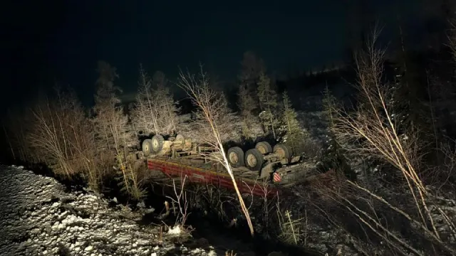 КамАЗ совершил кувырок в кювет на дороге между Коротчаево и Тазовским